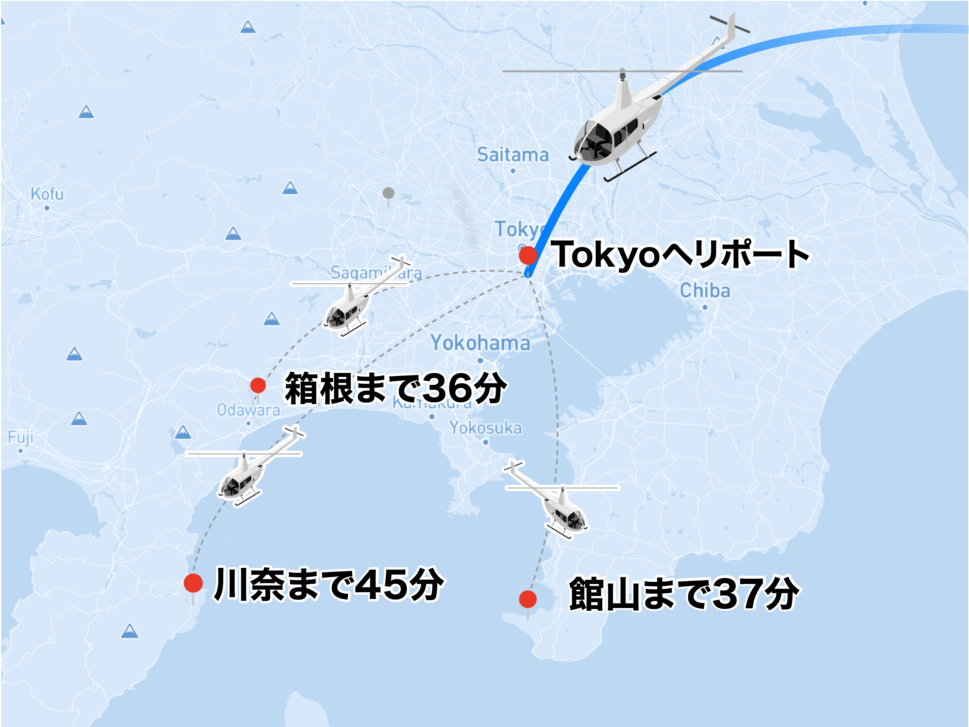 | 【片道】船橋ヘリポートー箱根仙石原ヘリポート | ¥201,500 | 45分 |