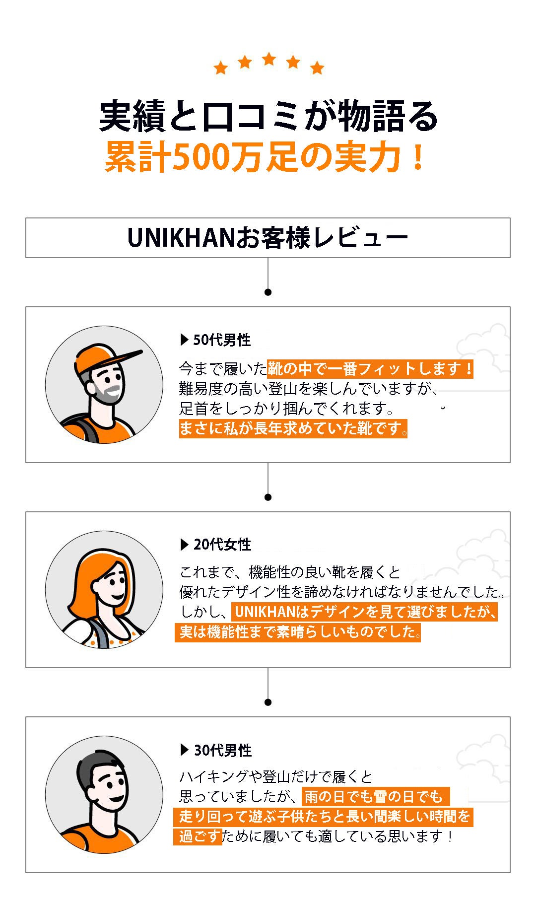 『UNIKHAN』は旅行・アウトドア、【これ一足で何処にでも行ける】ファッション性も兼ね備えた快適なアウトドアブーツ。使用素材にこだわり、【抜群の履き心地、耐水性、耐久性、速乾性を実現し】登山、水辺、都市など様々なシーンで活躍します。