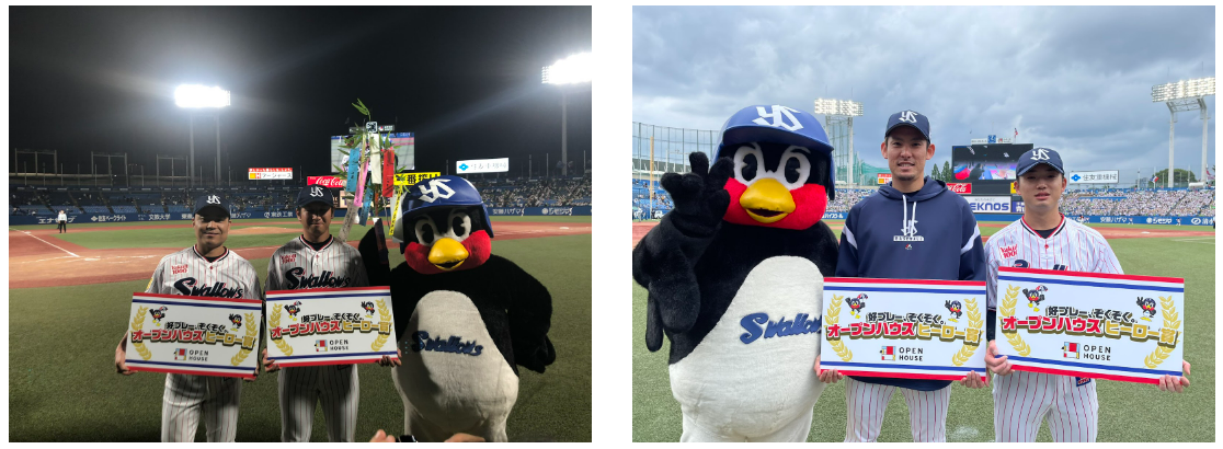 株式会社オープンハウスグループ(本社 東京都千代田区、代表取締役社長 荒井正昭、以下「当社」)は、7月23日(土)東京ヤクルトスワローズ(以下スワローズ)対 広島東洋カープ戦にて、冠協賛試合「オープンハウス つば九郎のお家プロジェクトDAY」を実施いたします。それに先立ち、シーズン前半のスワローズ主催試合で「オープンハウスヒーロー賞」を獲得した選手の中から、1番印象に残ったヒーローを決めるSNS企画「東京ヤクルトスワローズ オープンハウス前半戦プレイバックヒーロー賞投票」を実施いたします。