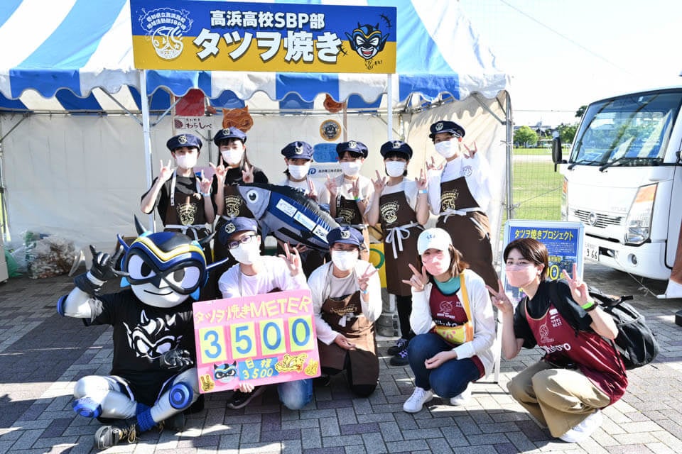 「Sの絆・タツヲ焼きプロジェクト」とは、高校生が主体となって、地域の課題を地域資源(ひと・モノ・産業など)を活用し、ビジネス手法を用いて解決を目指している高浜高校地域活動部SBP班(ソーシャル・ビジネス・プロジェクト)と、シーホース三河所属タレント「タツヲ」が手を組み、地域の皆さまに笑顔を届けたいという想いで2019年にスタートした『タツヲ焼きプロジェクト』。
