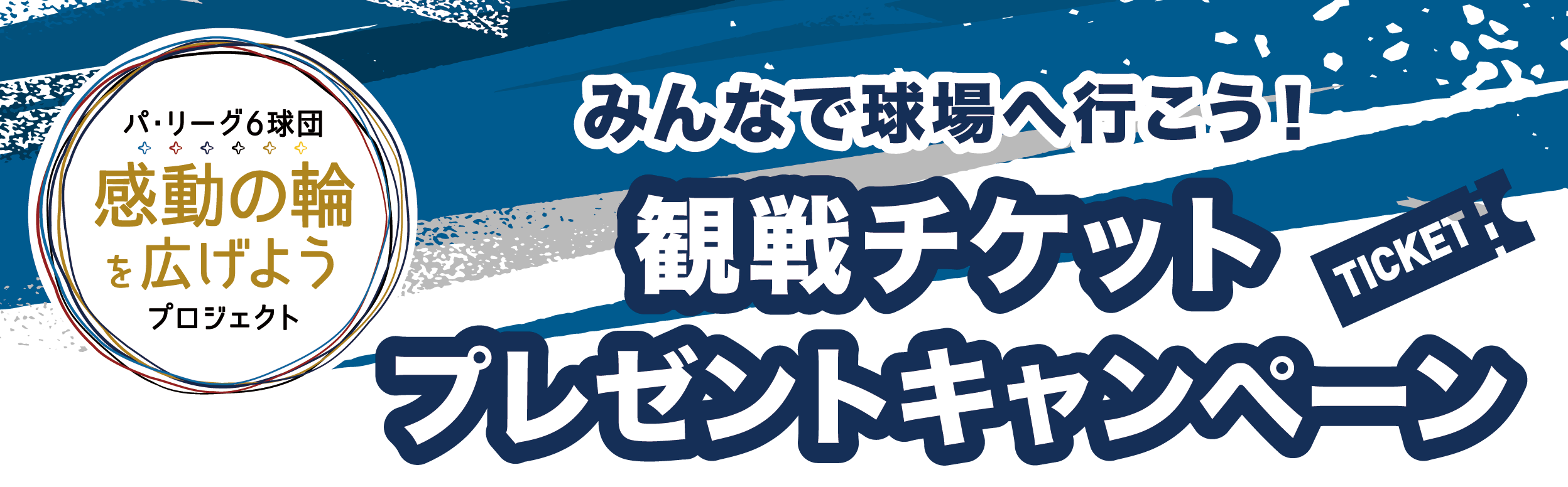新型コロナウイルス感染症の影響から思うように球場で観戦することができなかったファンの皆様に対して、改めて球場での野球観戦の楽しさを知っていただきたく、「パ・リーグ6球団感動の輪を広げようプロジェクト」では観戦チケットのプレゼントキャンペーンを実施しています。