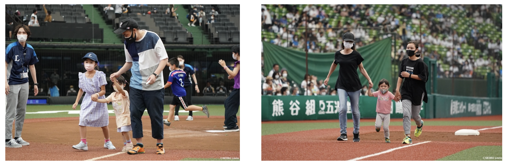 6月19日(日)にベルーナドームで行われた埼玉西武ライオンズ VS オリックス・バファローズ戦では、エッセンシャルワーカーの方でお子さんを持つご家族10組20名様を試合前のイベントにご招待し、グラウンドに出て親子でベースランニングという非日常体験をお楽しみいただきました。