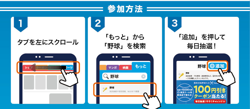 STEP3 「野球チャンネル」上部の企画バナーより抽選に参加