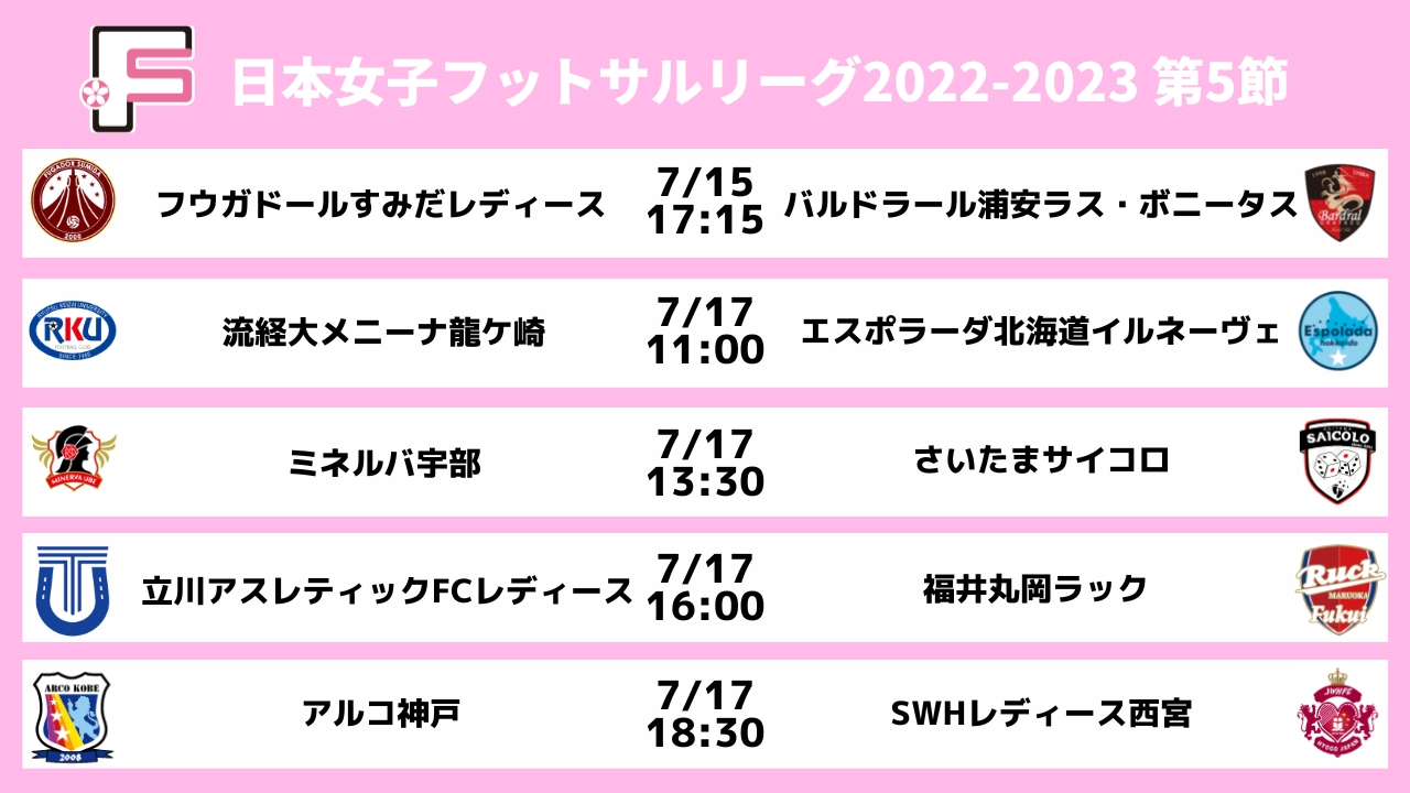 7月15日(金)から17日(日)の3日間、墨田区総合体育館とアリーナ立川立飛にて日本女子フットサルリーグ第4節・第5節が開催いたします。今シーズンも登録・視聴無料のSPOTV NOWにてライブ配信いたしますので、ぜひご視聴ください!