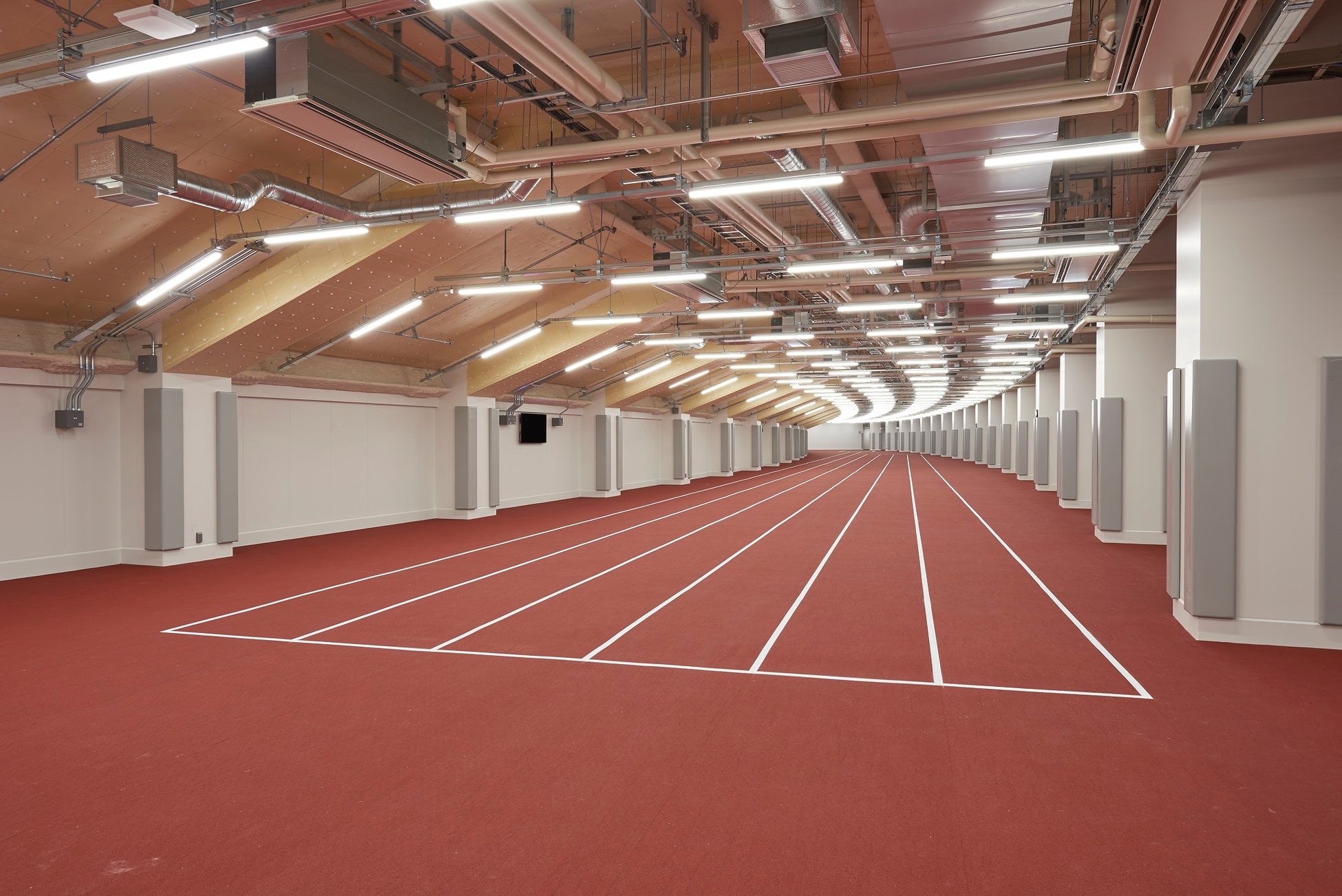 陸上競技の選手のウォームアップエリア。大舞台に挑むアスリートになりきって…。