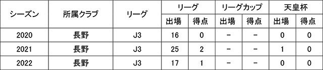 所属歴/烏山北FC – FCトッカーノU-15 – 市立船橋高校– 新潟医療福祉大学 – AC長野パルセイロ