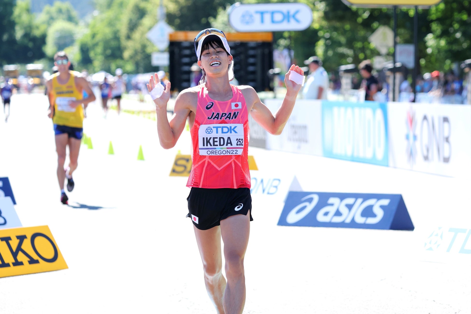 そのなかでも、素晴らしい成果を上げたのが男女20km競歩です。前回チャンピオンの山西利和選手(愛知製鋼)と、東京オリンピックでその山西選手を制して銀メダルを獲得した池田向希選手(旭化成)が終盤でマッチレースを展開する展開となり、山西選手が、1時間19分07秒で2連覇を達成。池田選手が1時間19分14秒で、世界選手権では自身最高順位となる2位で続き、「ワンツー・フィニッシュ」を達成したのです。さらには、今回初出場の住所大翔選手(順天堂大学)も1時間20分39秒で8位に入賞する活躍を見せました。