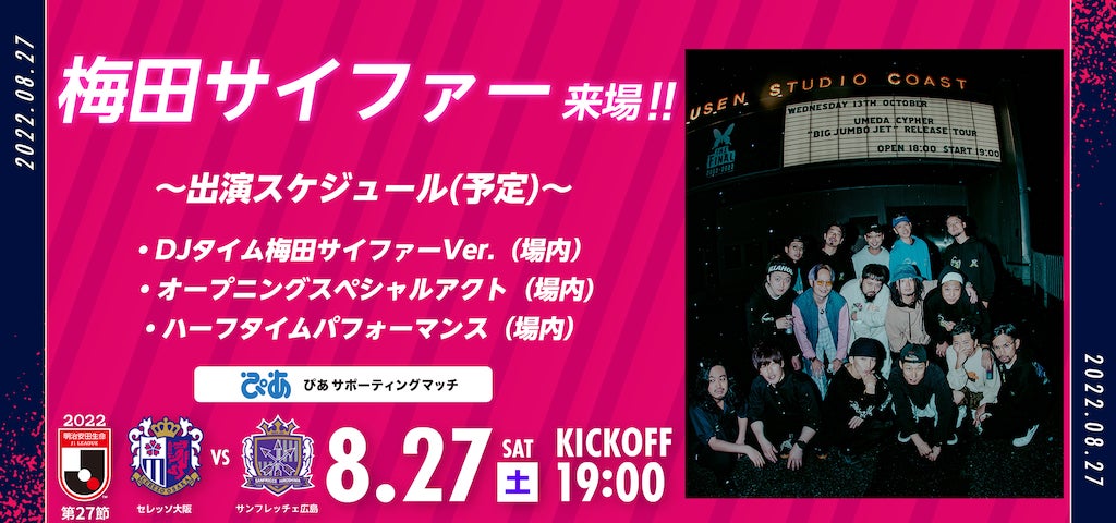 8/27(土)広島戦に2年連続2回目となる梅田サイファーの皆さんの来場が決定しました。