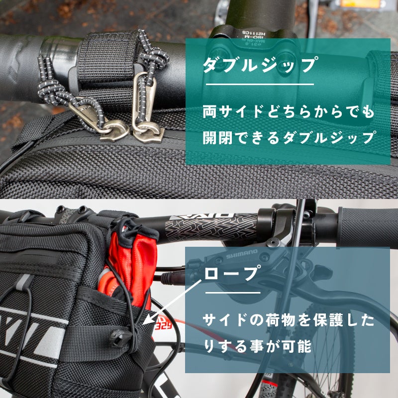 このフロントバッグはハンドル固定の他に