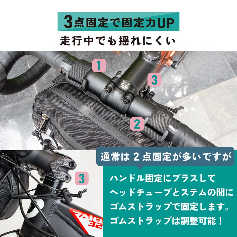 3点固定する事でフロントバッグはしっかりと固定されて