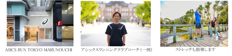 本イベントの舞台は、皇居から近い東京都・丸の内にある「ASICS RUN TOKYO MARUNOUCHI」で、アシックスランニングクラブコーチがクラブツーリズムのお客様だけにランニングの基礎を丁寧にレクチャーします。シューズ選びから履き方に始まり、ストレッチおよびランニング姿勢の指導を経て、実際の皇居周辺ランまでご案内します。また、シニアの初心者には少し敷居が高いと思われがちな「ランニングステーション」のデビューもしっかりアシストいたします。ランニング後にコーチとの昼食懇談会をご用意し、コーチに気軽に質問や相談をしていただけます。