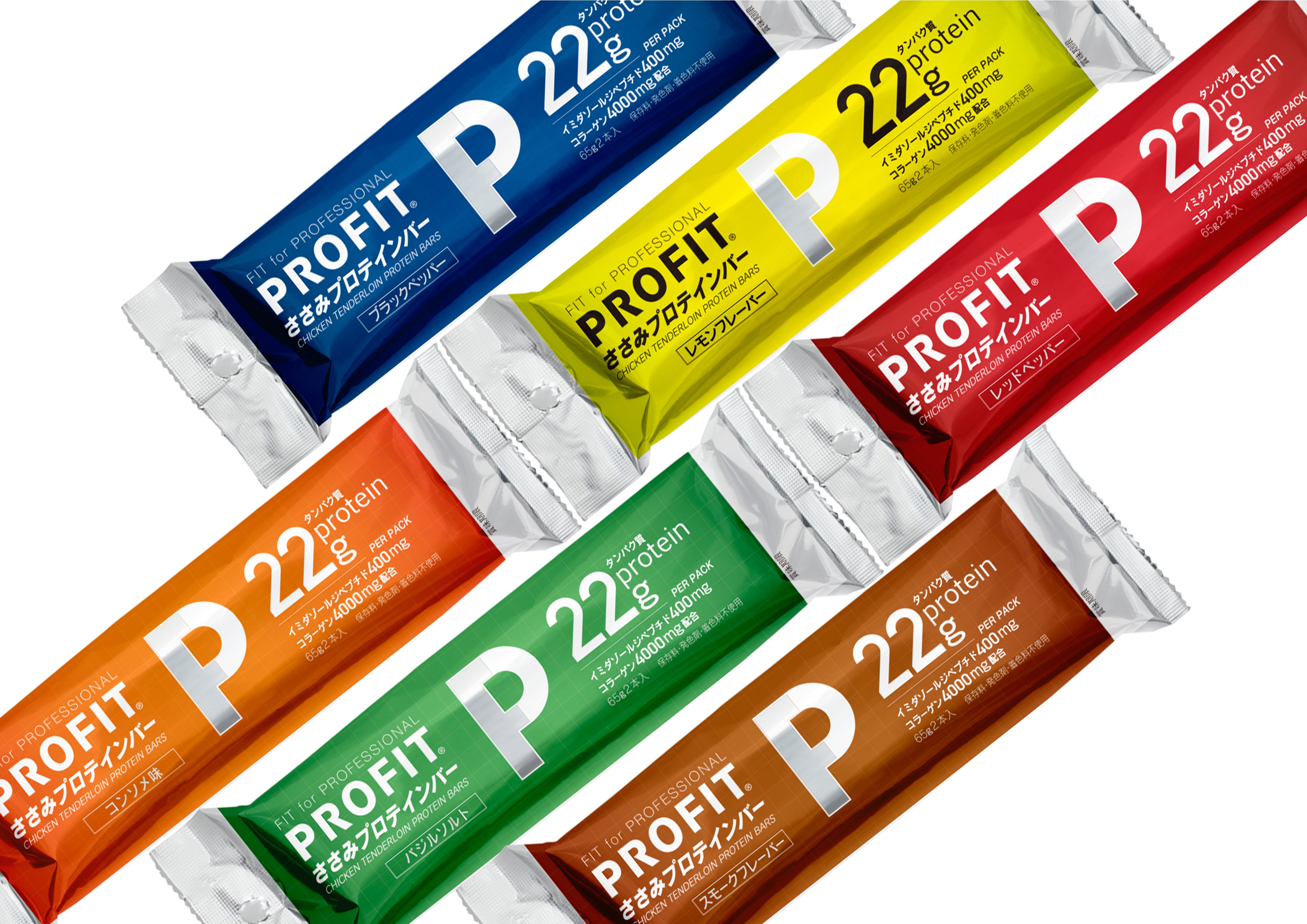 「PROFITささみプロテインバー」は、良質なタンパク質である鶏ささみに着目して、美味しくかつ手軽に食べられる商品を追求して開発し、2014年の発売からトレーニーやカラダづくりに興味のある方をメインターゲットに販売を行ってまいりました。