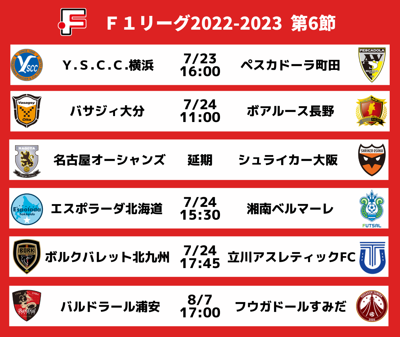 7月23日(土)、24日(日)にFリーグ2022-2023 ディビジョン1 第6節の4合を開催いたします。