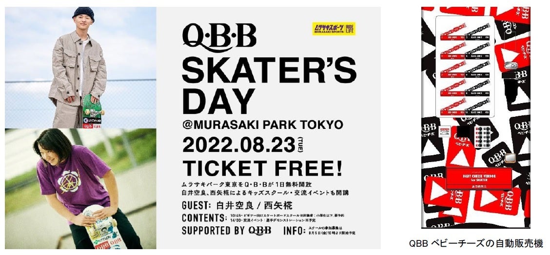 六甲バター株式会社(本社:兵庫県神戸市、代表取締役社長:塚本 浩康)は、2022年8月23日(火)に都内最大級のスケートパーク施設「ムラサキパーク東京」にて「QBB SKATER’S DAY」を開催いたします。午前の部ではスケートボード未経験の小学生を対象としたスケートボードスクール(小学生限定/事前申込制)を開講、午後の部では「ムラサキパーク東京」を一般無料開放(事前申込不要)いたします。また東京オリンピックスケートボード日本代表の白井空良選手・西矢椛選手も来場し、スケートボードスクールにゲスト講師として参加したり、午後の部ではパフォーマンスの披露や、来場者と一緒に滑る交流イベントも実施いたします。
