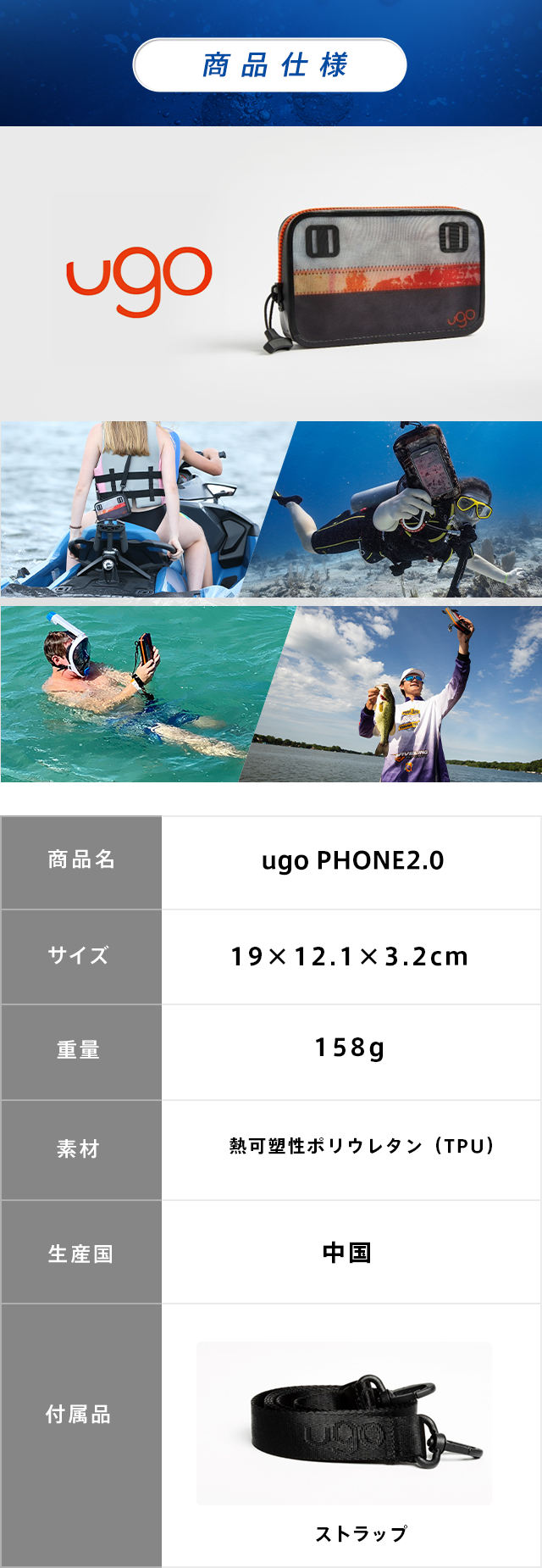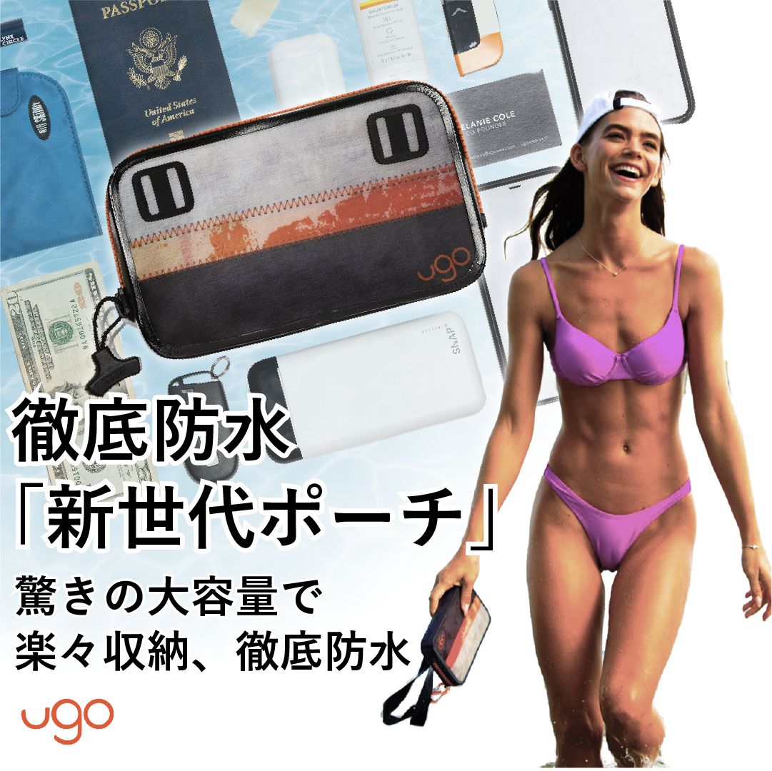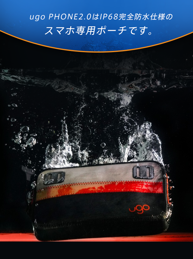 【ugo PHONE2.0】はスマホや貴重品を入れて携帯したまま、水泳やウォーターアクティビティが楽しめる完全防水ポーチです。