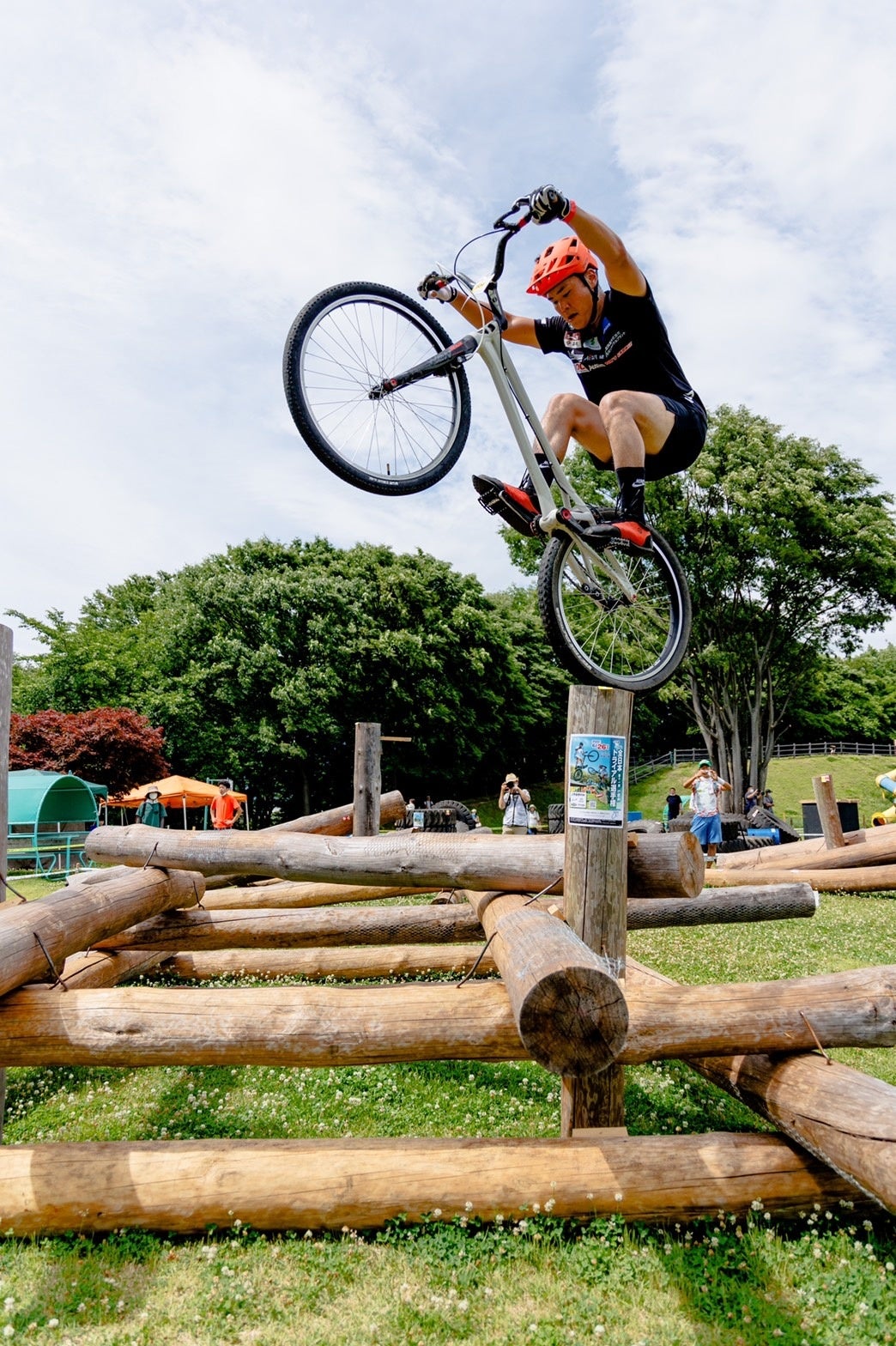 トライアルはスペイン発祥の自転車競技で、岩、丸太、コンクリートなど、人工的に作られたコースや自然の地形に設定されたゲートを足をつくことなくクリアすることでポイントを獲得する事ができます。