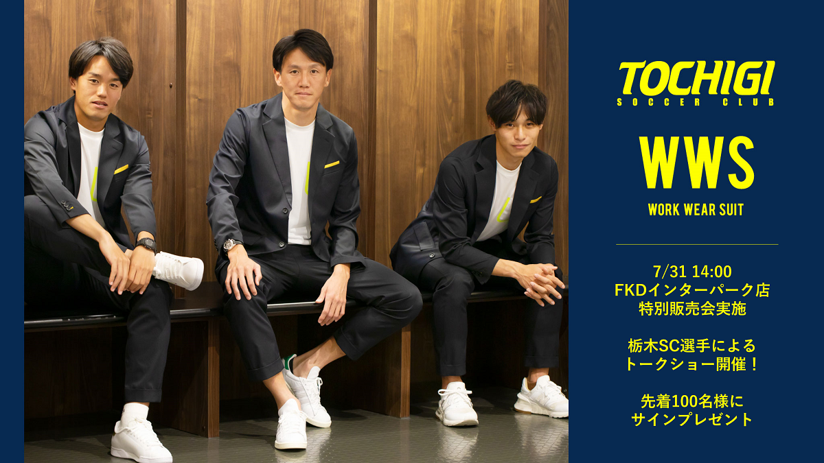 作業着スーツ発祥のボーダレスウェアブランド「WWS/ダブリューダブリューエス」を企画・販売する株式会社オアシスライフスタイルグループ (所在地:東京都港区、代表取締役:関谷有三 以下、オアシスライフスタイルグループ)は、栃木県宇都宮市のFKDインターパークにて実施している期間限定ショップが好調なことから、販売商品を拡大いたします。また、特別販売会として2022年7月31日(日)14:00より同会場にて栃木SC選手が参加するトークショーと、先着100名様に栃木SC選手のサイン色紙を配布するイベントを開催いたします。