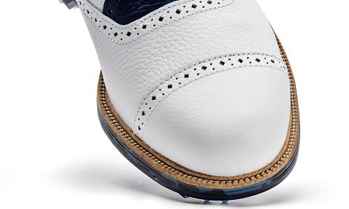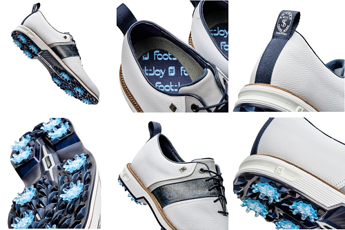 トッド・スナイダー氏は、FJを代表するシューズ「ドライジョイズプレミアターロウ」と「ドライジョイズプレミア パッカード」を美しいブルーのレザーでアクセントをつけ、スタイリッシュなデザインに生まれ変えました。