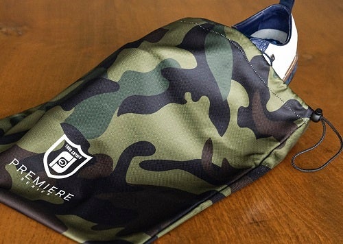 BLUES COLLECTIONの為だけに用意されたカモフラージュ柄、そして本コラボレーションの為に作られたロゴを配したの特別なシューズバッグ。