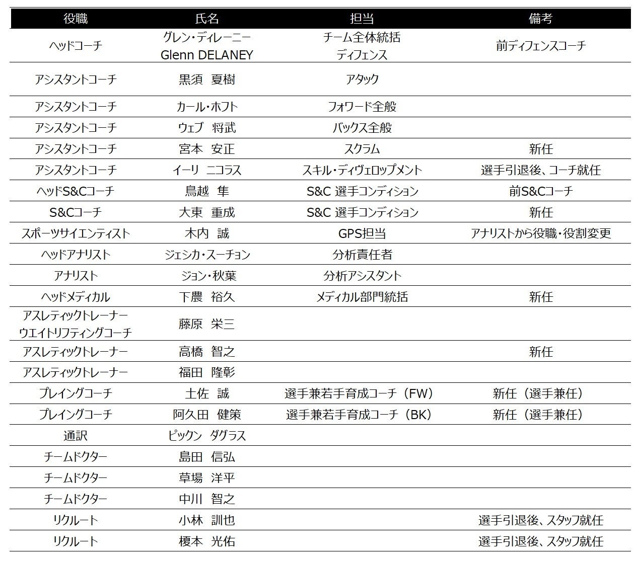 ジャパンラグビー リーグワン所属チームの三菱重工相模原ダイナボアーズは、NTTジャパンラグビー リーグワン2022-23における新体制を以下の通りお知らせします。