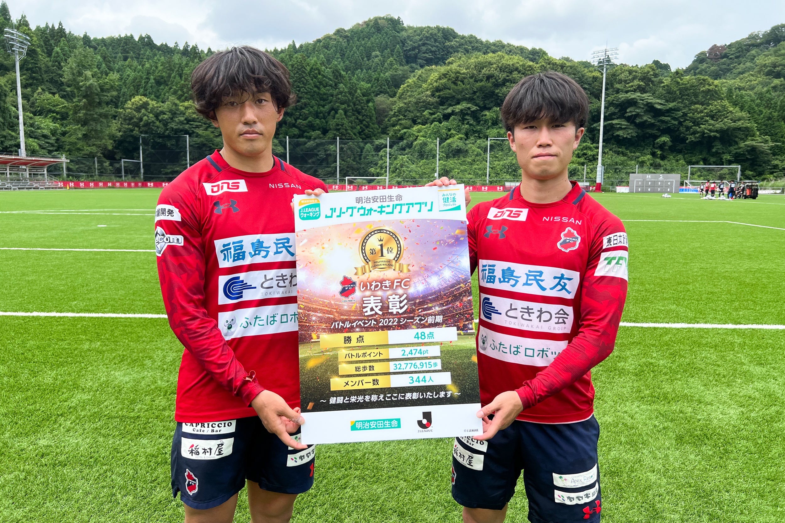 このたびいわきFCは、明治安田生命Jリーグウォーキングアプリのバトル企画において、2022シーズン前期1位の表彰を受けましたので、お知らせいたします。