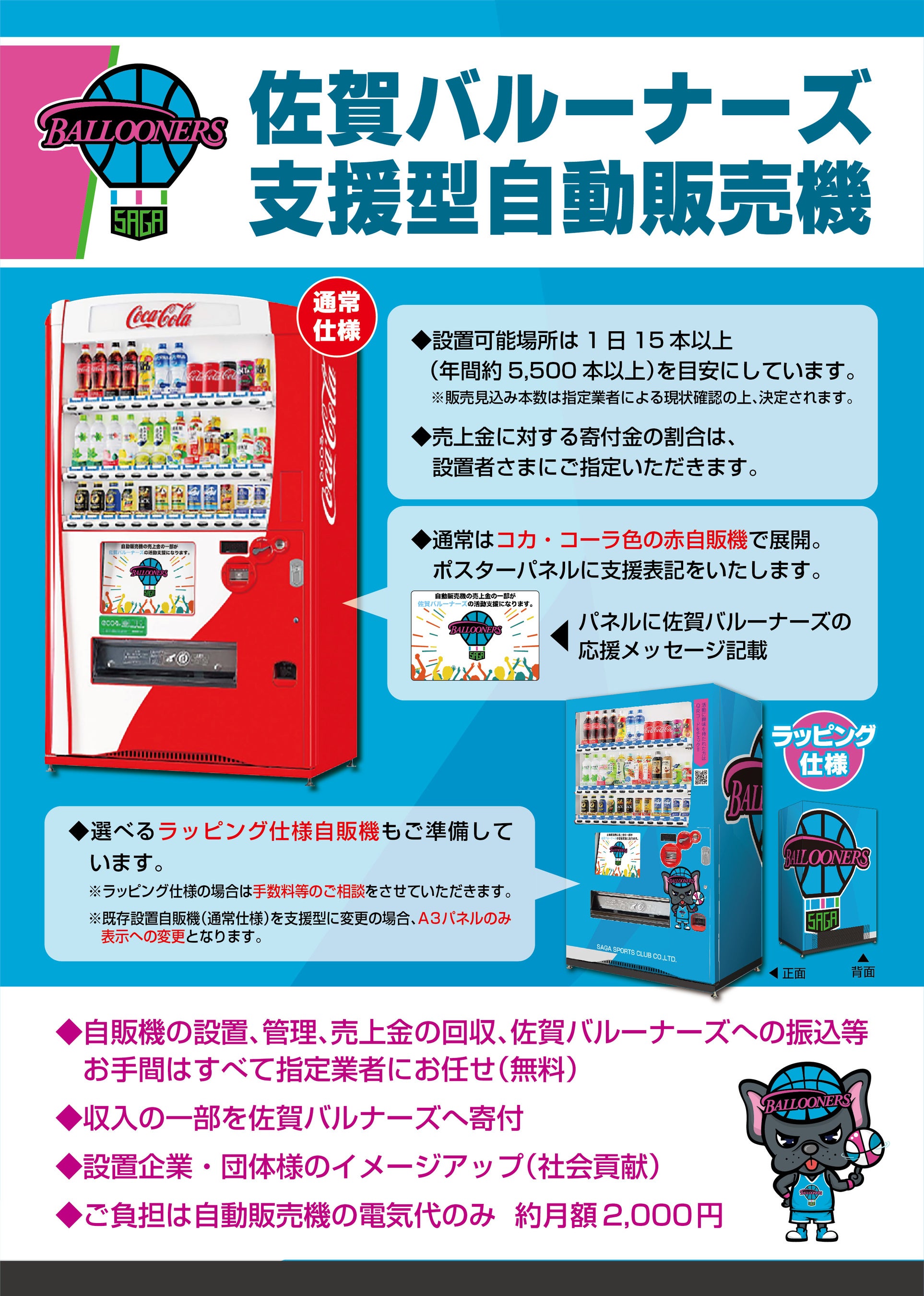 ただいま佐賀バルーナーズでは、自動販売機を設置してくださる団体・企業さまを募集しております。