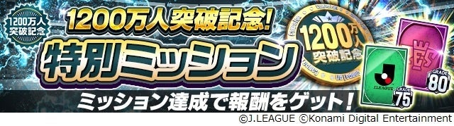 株式会社コナミデジタルエンタテインメントは、モバイルゲーム『Jリーグクラブチャンピオンシップ』(以下、『Jクラ』)の登録会員数1200万人突破を記念したキャンペーンを開始したことをお知らせします。