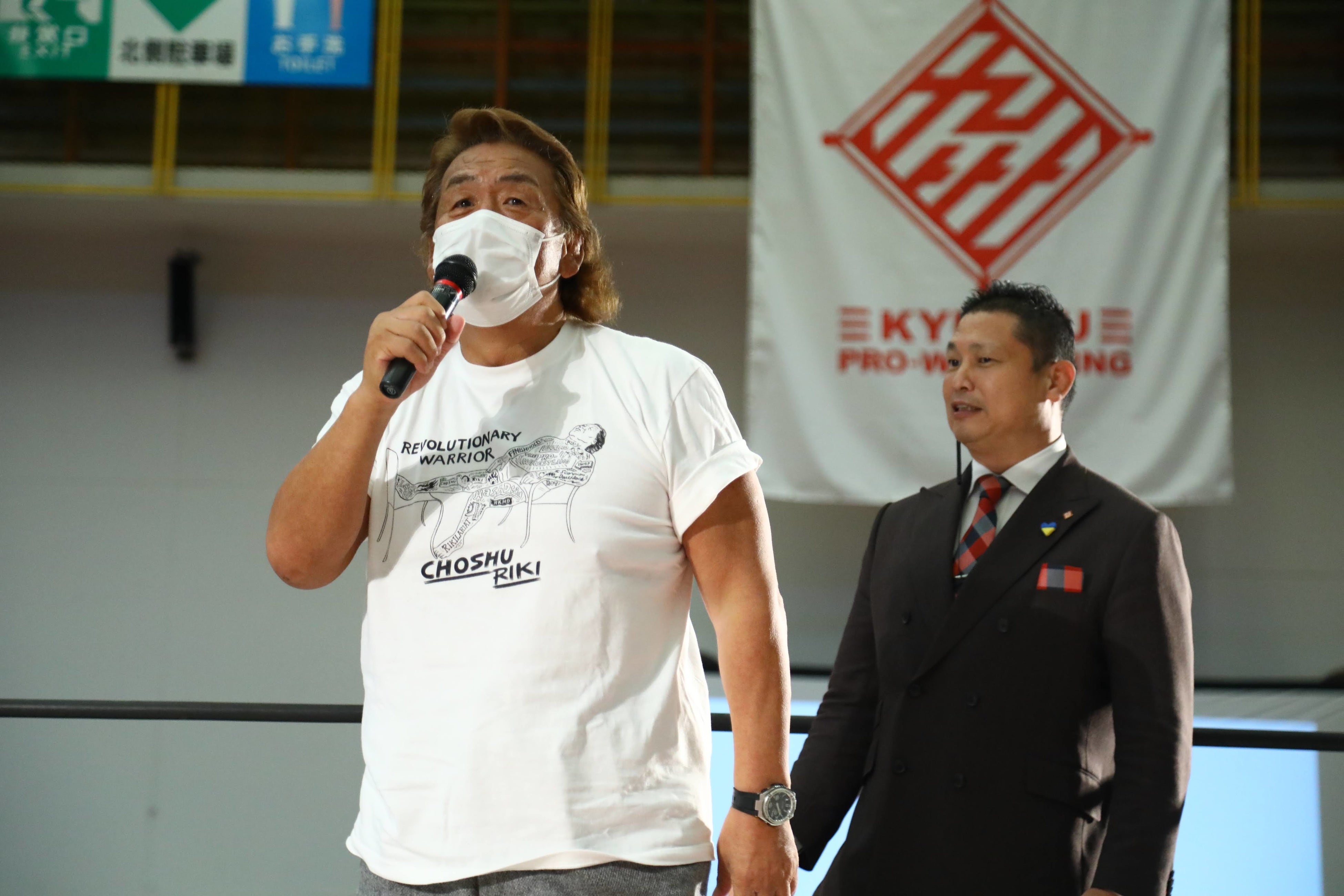 試合後には、藤波がスペシャル解説者をしていた長州をリングへ上げ、北九州で藤波×長州の2ショットが実現。