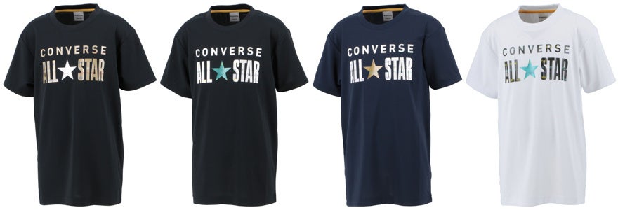 流⾏のロゴを⼤きくあしらった「CONVERSE ALL STAR」デザインで、存在感のあるメタリックプリントで仕上げました。