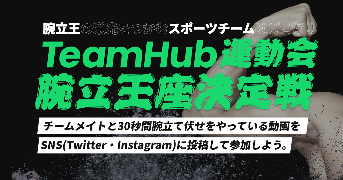 株式会社Link Sports(本社:東京都千代田区、代表取締役:小泉真也)は、開発・運営するスポーツチーム応援アプリ 「TeamHub」ならびに「PLAY」の利用メンバー数100万人突破記念企画第2弾として、一番アイディアに富んだ腕立て伏せができるスポーツチームを決めるSNS投稿型イベント「TeamHub運動会〜腕立王座決定戦〜」がスタートしたことをお知らせいたします。