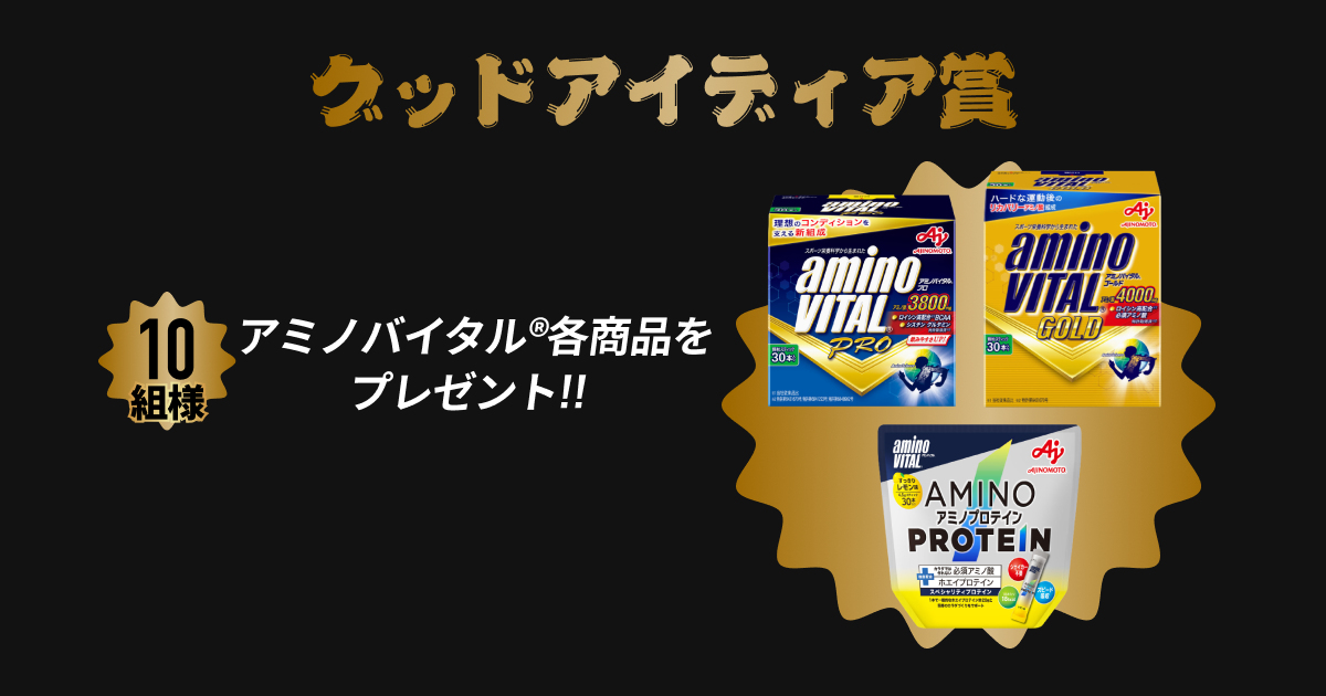 スポーツ時のカラダ全体のコンディショニングに、ぜひアミノバイタル®︎を摂取してみてください。腕立ての前後にもアミノバイタル®︎!腕立王者への挑戦をアミノバイタル®︎が全力でサポートします。