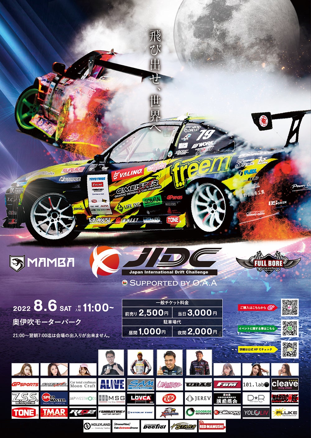 【「飛び出せ、世界へ!!」「ドリフト競技の世界大会予選」!!優勝者は2023年に開催「オマーンの大会」へ出場!!「JIDC」を8月6日(土)夜の奥伊吹モーターパークで初開催!!】