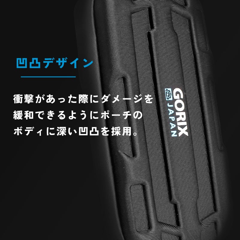 衝撃があった際にダメージを緩和できるようにポーチのボディに深い凹凸を採用。