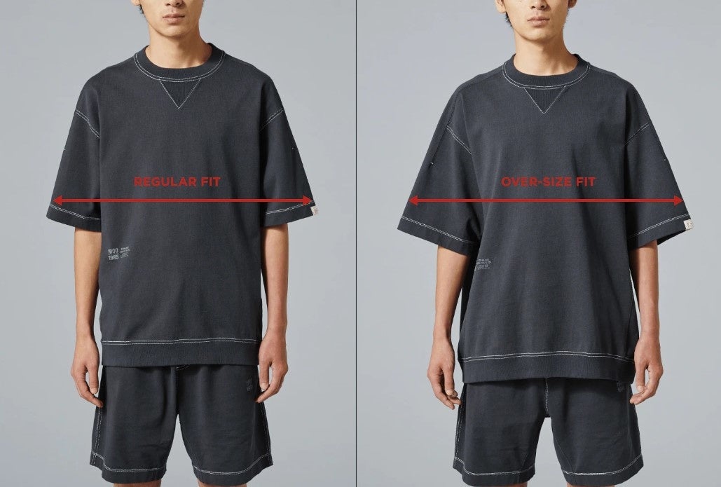 ※左:レギュラーフィット 右:オーバーサイズフィット