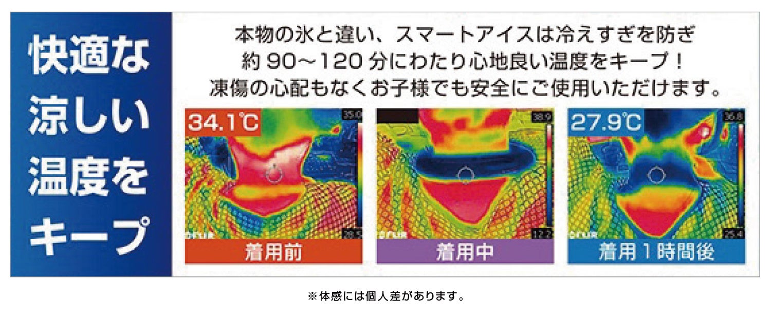 心地よい温度で首を冷やすので、冷えすぎず、お肌にも優しい仕様です。