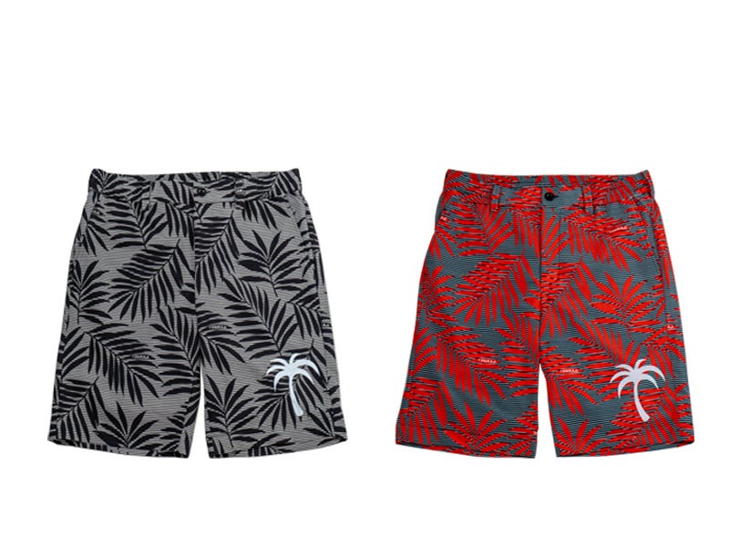 目を引くのは大胆にあしらわれたやしの葉プリントにブランドロゴの「パームツリー」が用いられ、ゴルフ場で着用するのはもちろんですが日常の生活空間にも溶け込む2wayアイテム。休日の午後、カフェのテラス席でリラックスして過ごすシチュエーションにもおススメです。