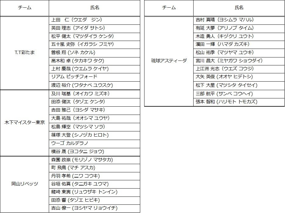 ※記載のない選手は、自由交渉可能選手となりますが、その場合、2021-2022シーズンの所属チームとの契約を妨げるものではなく、2021-2022シーズンの所属チームを含めた全チームとの交渉が可能となります。
