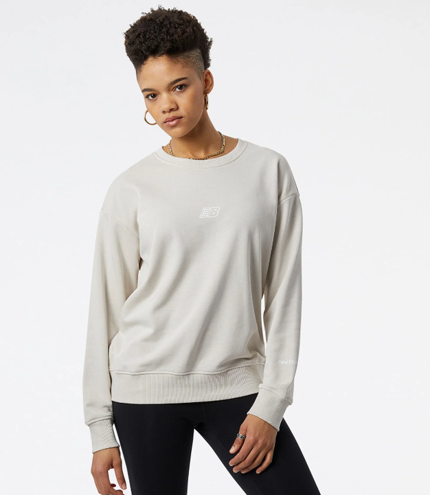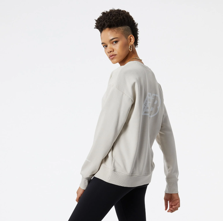 Essentials クルーは、ヘビーウエイトのフレンチテリーを使用し、背面の大きなNBロゴグラフィックで印象的にアレンジしました。タイツとのセットアップに適したオーバーサイズで展開します。胸のセンターにワンポイントのフライングNBロゴ、左袖にコンパクトなリニアロゴ、右脇にウーブンロゴラベルを備えています。優れた吸汗速乾性を発揮するテクノロジー「NB DRY」を採用し、体をドライにキープします。