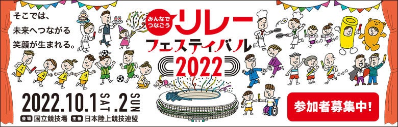 現在、10月1日(土)~2日(日)に国立競技場で初めて開催する「みんなでつなごうリレーフェスティバル2022」(以下、リレフェス)の参加者を募集中!