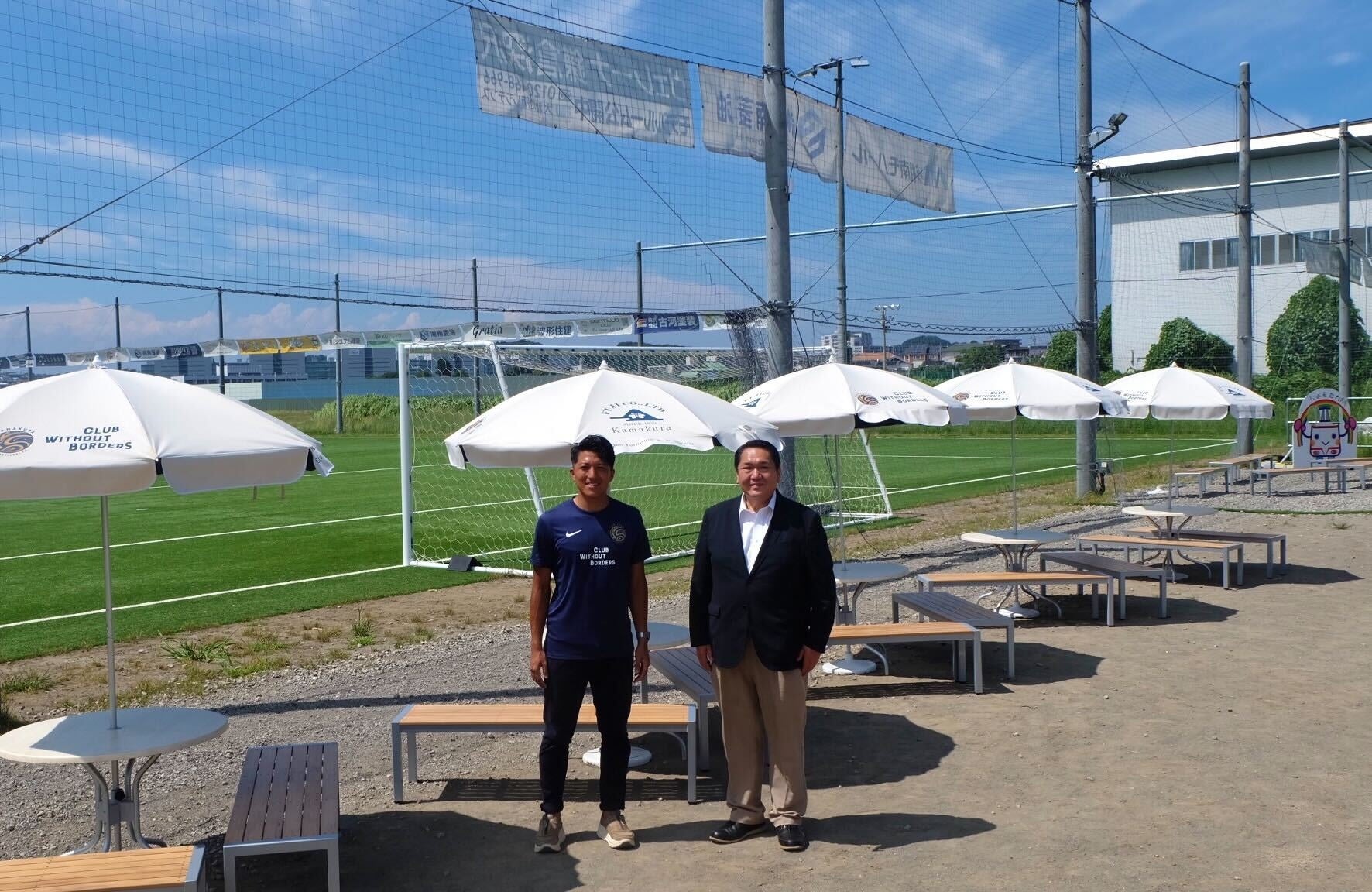 鎌倉インターナショナルFC(通称:鎌倉インテル、所在地:神奈川県鎌倉市、代表:四方健太郎)では、株式会社富士(所在地:神奈川県鎌倉市、代表取締役社長:安西久憲)よりクラブロゴ入りパラソル5本とベンチ20脚を寄贈いただきました。寄贈いただきましたパラソルとベンチはホームグラウンドであるみんなの鳩サブレースタジアム(運営:一般社団法人鎌倉スポーツコミッション、所在地:神奈川県鎌倉市、代表理事:堀米剛)に設置し、来場者の皆さまにご利用いただきます。