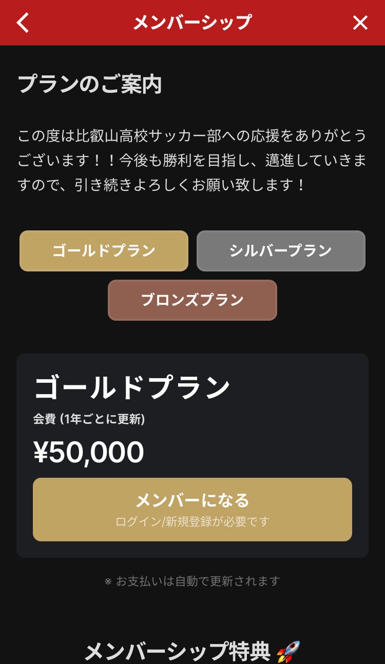 メンバーシップ機能からファンクラブ会員になって頂くと、チームから特別なグッズをお届けします!