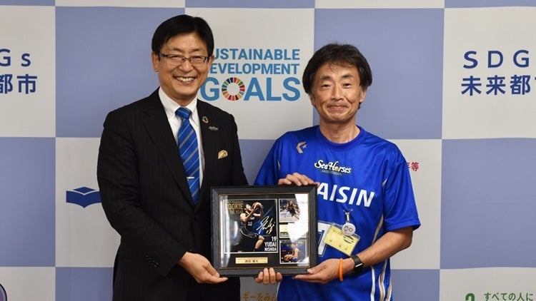 8月5日(金)代表取締役社長・鈴木秀臣が知立市の林郁夫市長を表敬訪問させていただき、2021-22シーズンの活動報告と2022-23シーズンに向けての意気込みをお伝えいたしました。