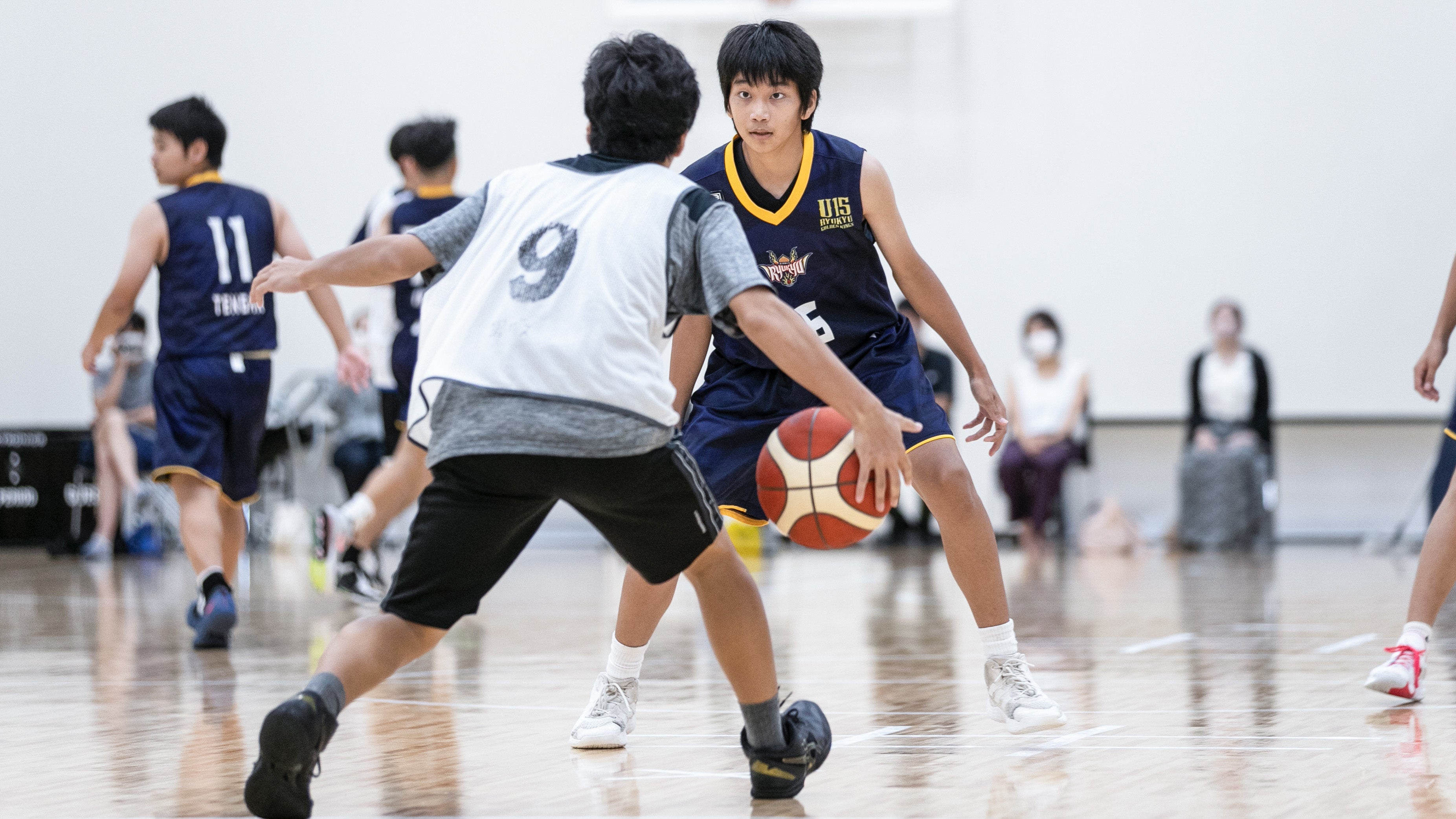 「九州クラブU15バスケットボールゲームス2022」直前の8/11(木)に、U18カテゴリ(高校生)にあたる球陽高校との練習試合を行い、より高いレベルで試合の経験を積んでいます。キングスU15は、沖縄県内の学校との交流や、沖縄県だけでなく他地域との試合を通して沖縄県の競技力向上を目指し活動してまいります。