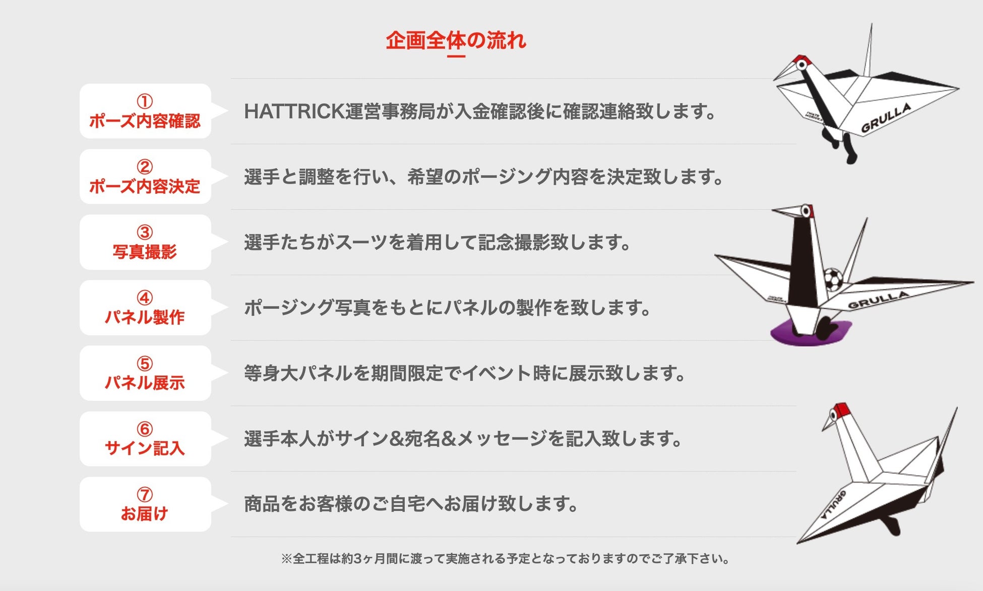 本オークションでは、「オフィシャルスーツ等身大パネル」に使用する選手写真のご希望のポージングを落札者様にご指定いただき、撮影、パネルの製作を行います。そして、イベントにてパネルの展示が終了後、選手が直筆サインと宛名&メッセージを入れてお届けいたします。