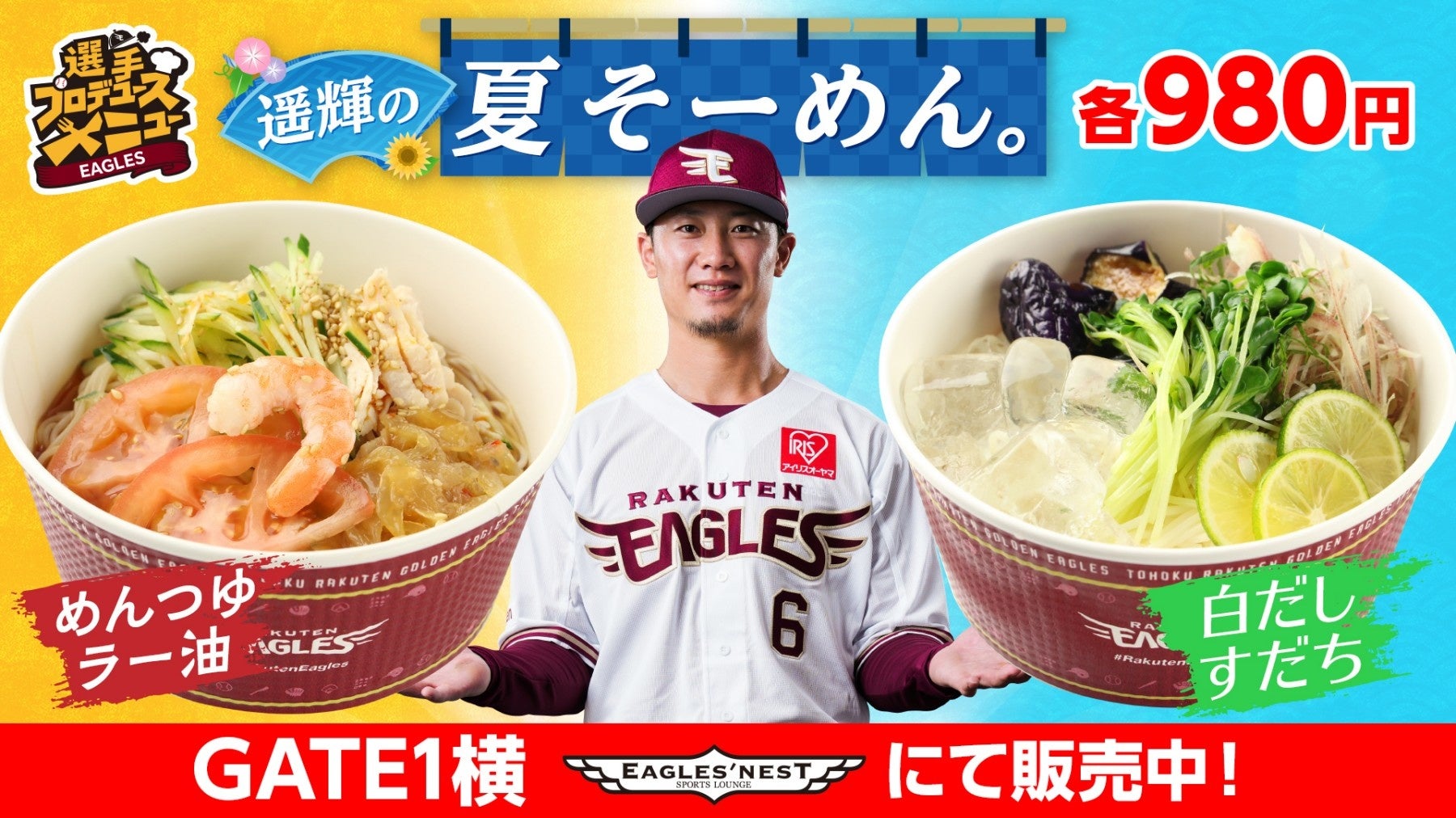 株式会社楽天野球団(本社:宮城県仙台市宮城野区、代表取締役社長:米田 陽介)は、8月12日(金)より、西川 遥輝選手がプロデュースした「遥輝の夏そーめん。どっちがいい!?(めんつゆラー油・白だしすだち)」を、楽天生命パーク宮城の飲食売店にて販売することとなりましたので、お知らせいたします。