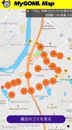 プロギング中はスタッフが独自アプリケーションの「MyGOMI」を使用し、各コースのごみデータ(ごみの位置と量)を集計しました。可視化することで、ごみが集まりやすいポイントを把握することを可能とし、参加者のモチベーションアップを図ることができました。