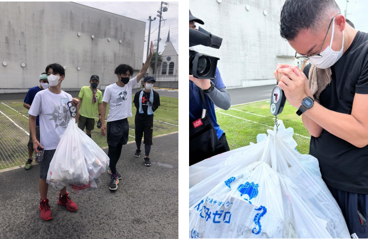 2チームが長い時間をかけ拾い集めたごみをいざ計量!なんと、小さなごみから大きなごみまで、合計で21.5kgの重さを拾うことに成功。どちらのチームが多くごみを拾えるか、重量を競い合った結果2km初心者コースチームが勝利しました。勝ち負けに関係なく、参加者みんなで互いに拍手を送り合い、今日の成果を両チームで讃え合えたようです。自分たちの手で集めたごみを改めて見た参加者からは、やりがいに満ちた笑顔を見ることが出来ました。次回開催でも、こうした皆さんの笑顔や達成感の表情を見ることを楽しみにしています。