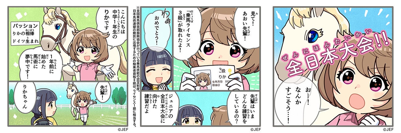 第1回は「馬術競技を見に行こう!」で、全日本大会の魅力がわかりやすい内容になっています。