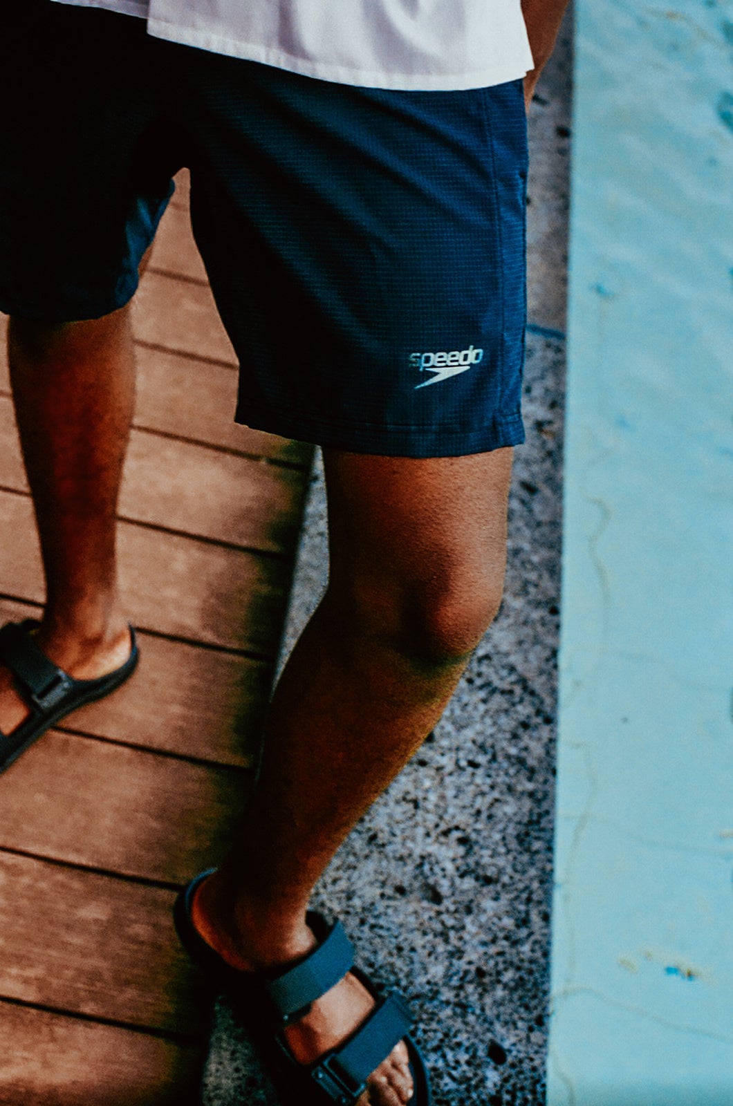 ショートパンツにレイヤードされているインナーは、本格的なスイムウェアとして着用することも可能となっています。