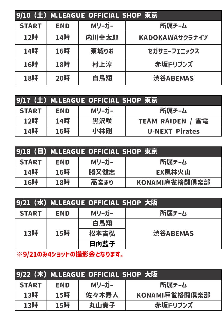 また、M.LEAGUE OFFICIAL SHOPのオープンを記念しMリーガーとの2ショット写真撮影会の実施も決定いたしました。